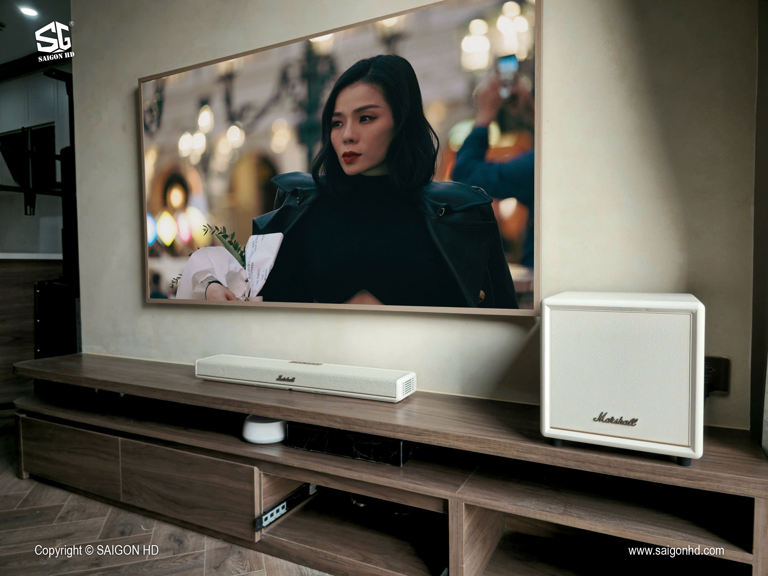 Dan am thanh Soundbar Marshall Heston 60 - Heston Sub 200 - Dau dia than JBL Spinner BT 17